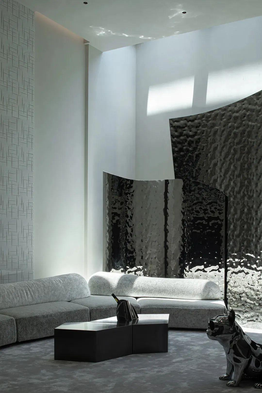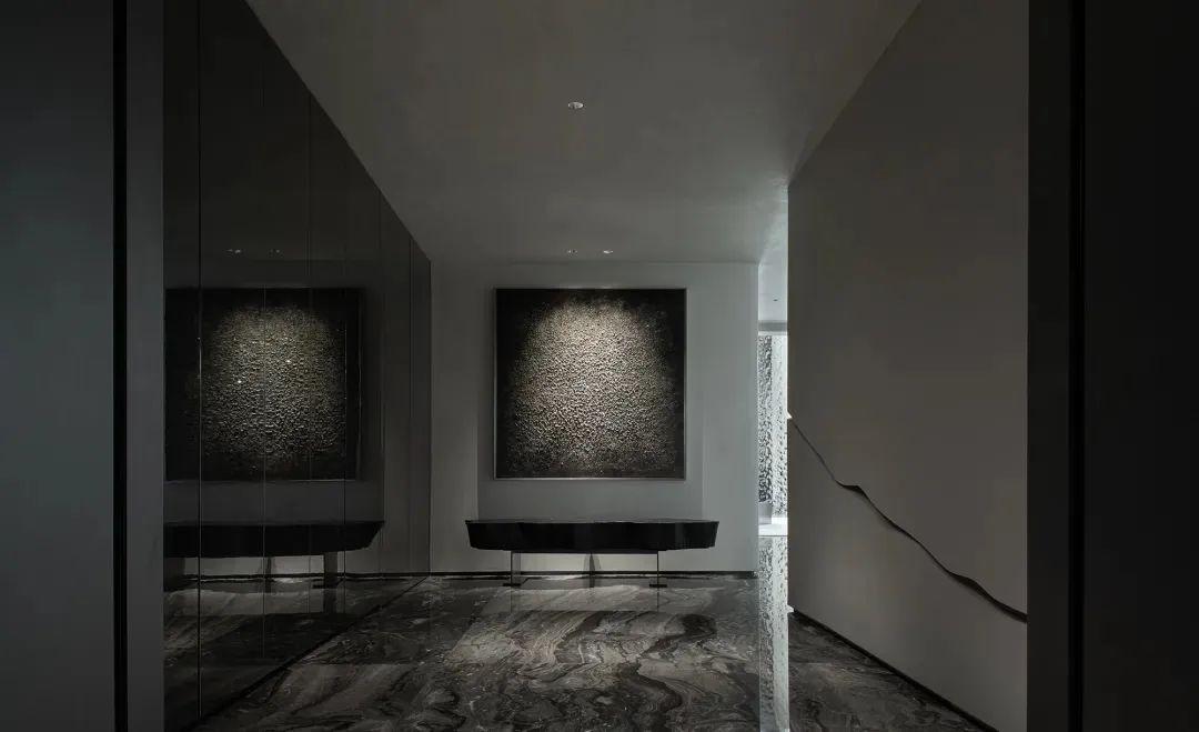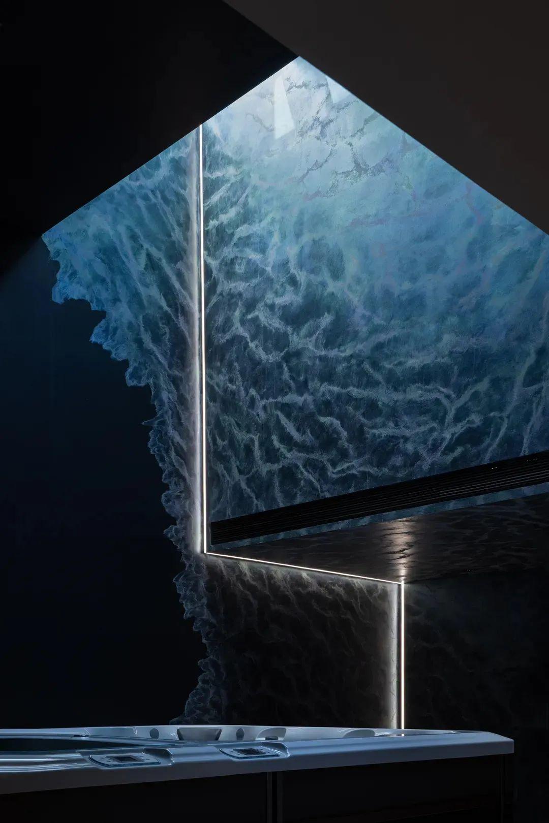 泳池與SPA區(qū)墻面采用藝術(shù)漆,模擬深?;虮ㄉ焦鹊膲邀惥坝^,天光透入增添幽深感。線性燈光設(shè)計(jì)既強(qiáng)化空間立體,又微妙打破寧靜,賦予每次體驗(yàn)以神秘而美麗的氛圍。